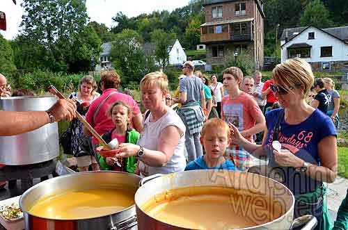 Entrée gratuite et un "bol de dégustation" payant donne la possibilité de goûter à volonté toutes les soupes. Les 28 et 29 septembre, les amateurs de soupe avaient rendez-vous cette année dans le Parc de Rompré à La Roche-en-Ardenne. (en face des Grès de La Roche) . Un concours de la meilleure soupe, un marché de produits de terroir, des dégustations sur le festival ou dans les restaurants de la ville des meilleures recettes de soupes, des animations nombreuses et de la musique.