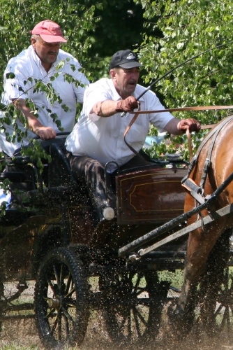 Le public se groupe autour de la piste: les chevaux entrent en scène. Le concours d'obéissance à la parole commence; les chevaux tirant un traineau doivent suivre un circuit balisé, passer entre d'étroites portes sans accrocher les bornes et faire tomber les balles-témoins. Suivent les splendides attelages, concourant sur le même tracé.