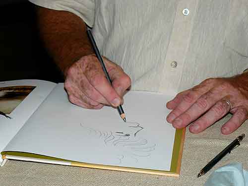 L’endroit de par sa structure et son impressionnante charpente inspire le calme et l’admiration, ambiance qui convient parfaitement à la séance de dédicaces entamée par l’artiste.