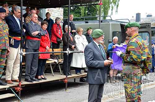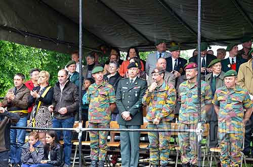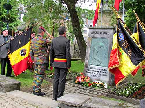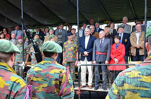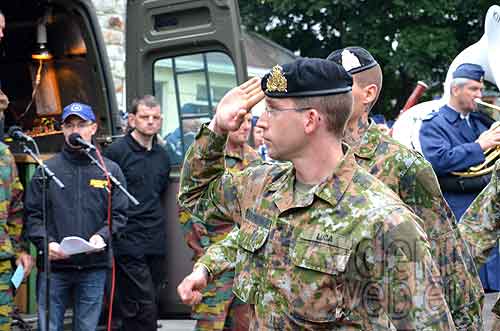 11h45 idem devant monument des Chasseurs Ardennais rue de l’Hotel de Ville – 12h00 idem devant l’autre monument rue de l’Hotel de ville.