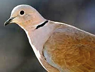 Légende : La tourterelle provient de l’Asie mineure, son cou est décoré d’un collier noir, elle mesure plus ou moins 40 cm.