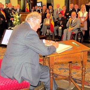 Après le discours du bourgmestre Willy Demeyer, les Souverains reçurent quelques cadeaux.