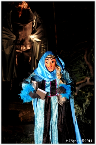 Après quoi, les Macralles prirent la direction du lieu dit «Tiennemesse» ou elles conduirent leurs invités et le public, par une marche aux flambeaux, afin qu'ils puissent assister au Sabbat. A cet endroit, elles accueilleirent leur maître, le“NeûrBo”(le bouc noir) dont son arrivée ne passa pas inaperçue, elles apportèrent le chaudron afin de réaliser leur préparation «TCHA-TCHA»(potion à base de myrtilles écrasées), nous assistons également à l'arrivée de quelques Macralles par les airs sur leur balai et nous nous réjouissons à écouter quelques anecdotes cocasses de la vie locale et régionale. Durant tous le Sabbat, nous avons eu, à plusieurs reprise, la visite de notre garde champêtre ("l'Emmacrallé"), qui tenta, sans grand succès, de mettre fin au Sabbat et de faire régner l'ordre public!