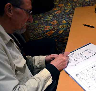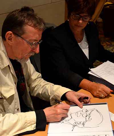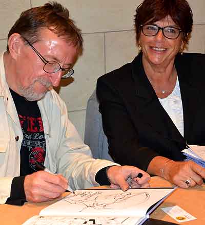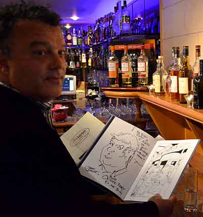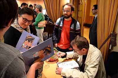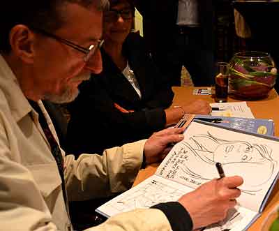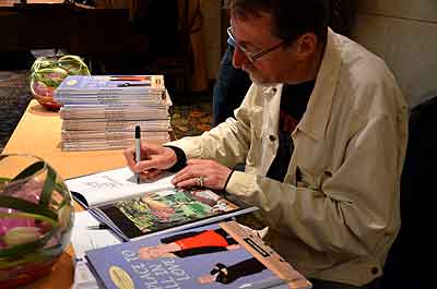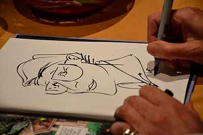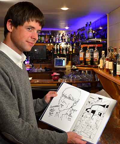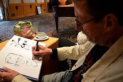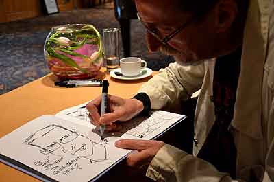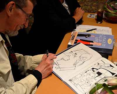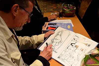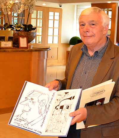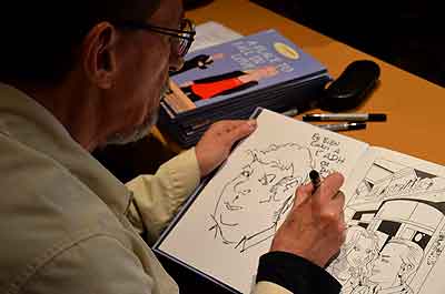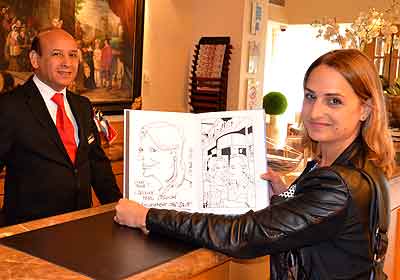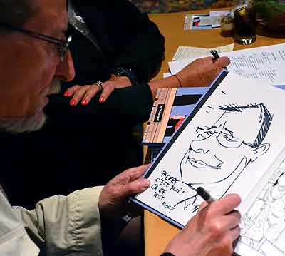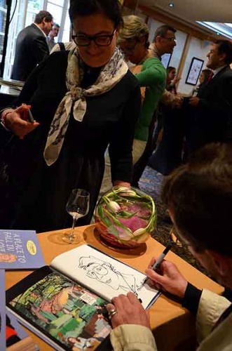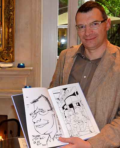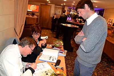 Ce mardi 27 mai 2014, monsieur Steve Grunwald, le directeur du Palace 5 * “Le Châtelain”, nous présenta “A Place to Fall in Love”, la nouvelle BD de Christian Jacot. Après les présentations de l'album, l'artiste Christian Jacot caricatura les invités dans les premiers numéros que l'hôtel offrait dans le cadre de cette conférence de presse exceptionnelle.