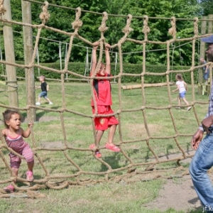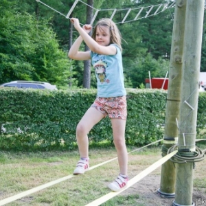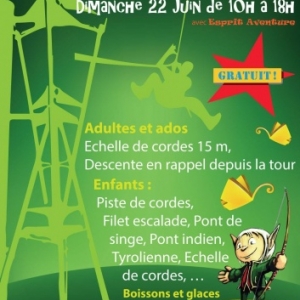 Au pied de la tour, le filet d'escalade, le pont de singe et la piste de corde sont pris d'assaut par les enfants.