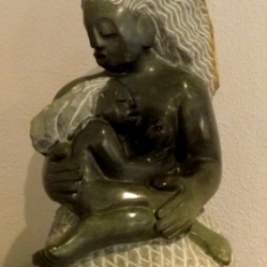 Les sculptures d'art Shona en serpentine sont des pièces uniques taillées par des artistes au Zimbabwe. Elles sont sculptées dans la Stéatite qui est le nom générique de minéraux tels que la Serpentine, Pierre à savon, Springstone, Wonderstone, Rapocco, Verdite, Redjasper, Opal, Fruit serpentine,White opal, Soapstone, etc.... L'art Shona, dont l'origine vient de la tribu Shona, évoque la famille, la foi et les valeurs sociales et spirituelles. Les artistes sculptent aussi bien des œuvres figuratives qu’abstraites selon leur inspiration du moment et toujours de manière intuitive. Longtemps oublié ou délaissé, dans les années 60, après et malgré maintes difficultés, l'art africain Shona prend tout son essor. Il met en exergue l'art existant, incite et convainc les artistes à se remettre à créer, et promeut cette création à travers le monde Anglo-saxon pour atteindre son apogée dans les années 90. L'art Shona est à présent exposé dans toutes les galeries d'art du monde. Le public est toujours surpris de la richesse des artistes Zimbabwéens. Le Zimbabwe est certainement le pays ou la concentration d'artistes sculpteurs est la plus importante au monde. Il y a un second personnage emblématique au Zimbabwe dans la reconnaissance de l'art Shona, il s'agit de Tom Bloomefield qui - après un parcours très mouvementé et riche en rebondissements - se consacre depuis plusieurs années à l'art Shona en mettant son patrimoine personnel à la disposition des artistes Zimbabwéens pour leur permettre de créer de nouvelles oeuvres en toute sérénité. L'artiste la plus connue mondialement est sans nul doute Colleen Madamombe qui a crée son très fameux personnage "Madamombé". Elle nous a quittés en 2009 des suites d'une longue maladie.