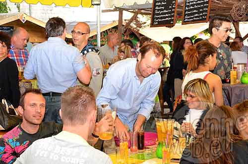 Les produits wallons ne seront pas en reste, avec la présence en force de la viande de bœuf de Wallonie, servie en carpaccio bien frais mais aussi en côtes à l’os gourmandes, jouxtant les bières de Chimay, de Leffe, d’Achouffe, des Ursulines ou d’ailleurs, les tendres boulets à la liégeoise, les ravioles artisanales préparées à partir de produits du terroir, les salades variées et autres grillades savoureuses, les vins de fruit, et bien sûr le pèket nature ou citron,… Au Village Gaulois, si on peut y faire la fête en se désaltérant, on peut plus qu’avant encore y faire bombance en partageant moult pitances avec ses amis de toujours ou de rencontre…