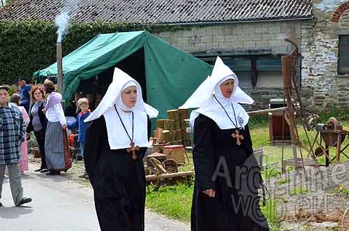 Dispersés dans le village, c’est un peu plus de cinquante artisans et exposants qui se feront un plaisir de vous faire revivre à bon vî timps. Ainsi vous pourrez rencontrer le forgeron, le bourrelier, le fagotier, le fabricant de balais, le fabricant de moules à beurre, le fabricant de râteaux en bois, le travailleur de noisetier, de saule, de seigle, de cuir, de rotin, le fabricant de manches à outils, le potier, le pailleur, la personne qui canne les chaises, le fabricant de rouets, le batteur de faux, les scieurs de long, le tondeur de moutons, les batteurs de fléaux, le tailleur de pierre, les dentellières, les lavandières, les fileuses de laine, les brodeuses, les modistes, les graveurs sur bois, le crieur de rue, les curés de campagne et leurs enfants de cœur, les gendarmes en costume d’époque, les religieuses, le boulanger, le légumier, les peintres, le graveur sur verre, l’ardoisier et bien d’autres encore.