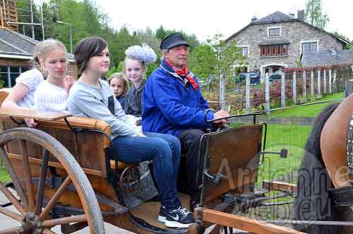 Vous pourrez également contempler et revivre la fenaison et le labour avec nos vieux chevaux ardennais (de plus en plus rare), visiter une vieille cuisine reconstituée comme jadis de même qu’une laiterie en activité, une forge, une exposition d’objets insolites, de vieilles photos, d’objets religieux, collectionneurs de cloches, de vieilles voitures et motos, de vieilles machines agricoles, de vieux tracteurs, d’antiquités militaires, vous promener dans un char attelé, vous amuser à la riboulette, à la bizette, aux quilles, aux bouchons, aux cartes, admirer des expositions.