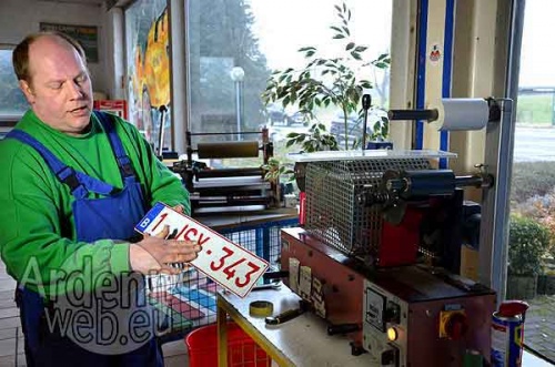 Xaver Weber, garagiste, fabrique de nombreux types de plaques d’immatriculation (des plaques belges agricoles, marchandes ou civiles tout comme des plaques luxembourgeoises), des plaques de noms de rue…