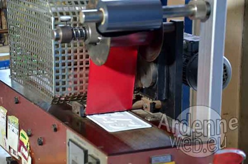 -La mise en couleur : elle se réalise après emboutissage, et ce dans une autre machine. On insère les plaques dans la machine et celle-ci lui applique sa couleur grâce à un vinyl que l’on a sélectionné au préalable. Par pure précaution, il est nécessaire d’appliquer une protection à la plaque lors de cette étape, pour éviter que la couleur se retrouve à un endroit non-souhaité.