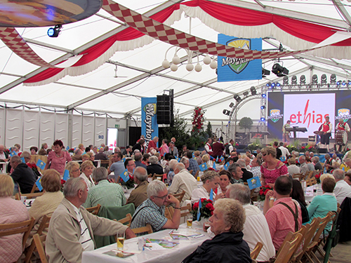 Le dimanche 31 juillet, à 11.30 heures sous le chapiteau, tous les hôtes de Mayrhofen invitaient tout le monde au verre de l’amitié à l’occasion du traditionnel « Frühschoppen » ; une rencontre d’une cordiale convivialité.