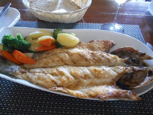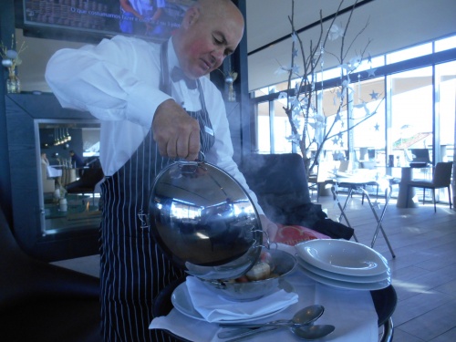 Près du port se trouve l’Hôtel Faro**** géré par Fernando Hipolito et sa fille Sofia. La vue est superbe sur toute la cité de Faro. Son restaurant « Ria Formosa » propose notamment : le « Muchama » (filet de thon fumé) en amuse-bouche, servi avec du « Soalheiro Alvarinho blanc », les « Chocos » (prononcez « Chocouch »), seiches avec une purée de maïs, accompagnés d’un « Cerro das Douro Mouras 2011 – grande escola branco », une « Cataplana », nom du récipient et du plat cuit, avec coquillages, bar, oignons…la spécialité culinaire de l’Algarve mais ici, quel souvenir ! Ensuite, après 39 ans, c’est la rencontre avec Eduardo Valagao, un autre ancien professionnel du tourisme. Suivent les figues, les fromages, les « Serra das estrela » sur toast, avec un Porto reserve blanc Dona Antonio Reserva Branco Ferreira. « Life is good » nous lance Eduardo ! Et pour terminer ce festin, les « Sonhos dreams », les « Filho » sorte de crêpes, les « Broa » amandes et maïs, le tout accompagné de Porto vintage 1985 Real Ca Velha.