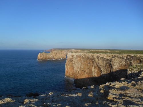 Après Aljezur, capitale de la patate douce, se situe Monte Clérigo (prononcez Monte Clérigouch), un merveilleux petit port avec une longue plage de sable blond et des falaises merveilleuses. Quel ravissant spectacle de la nature ! C’est tout simplement l’Algarve ! A 15 minutes, les surfeurs apprécient le village de Amado (« l’aimée en français). Le point le plus à l’Ouest de l’Europe s’appelle le Cap St-Vincent, entouré lui aussi de belles falaises. Le phare de 1900 abrite la lentille de Fresnel. Sagres, promontoire sacré chez les Romains, est nommée « la fin du monde » jusqu’au XVe siècle. Dans la forteresse de Sagres, se trouvait une école de navigateurs, avec une rose des vents. Ils apprenaient du haut des falaises.