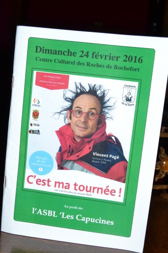 C’est la Confrérie de la Djote qui a invité Vincent Pagé au Centre Culturel des Roches de Rochefort afin de soutenir l’ASBL «Les Capucines». Cette dernière est active dans le domaine de l’accueil et de l’éducation d’enfants, particulièrement dans l’enseignement spécialisé. Les bénéfices recueillis permettront d’isoler la nouvelle salle de psychomotricité sise à l’ancien carmel Saint-Joseph et de la doter d’un revêtement de protection pour l’utiliser comme salle polyvalente, sans risque de l’abîmer.