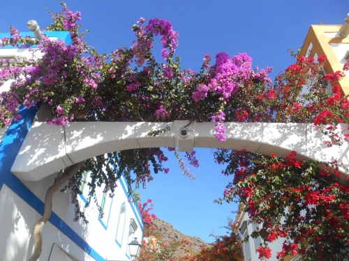 Après un vol direct Brussels Airlines de 4h, partons à la découverte de l’île, en compagnie de Carmen pour la conduite et de Roland Vranx, un Belge bien sympathique, habitant l’île depuis une trentaine d’années, pour les commentaires. Les hautes montagnes freinent les vents Alizés, le nord humide se différencie du sud, plus ensoleillé et désertique. Le phénomène de « pluie horizontale » s’explique par les pins qui captent l’humidité des nuages. Ils « traient » les nuages, me disait Roland. De nombreuses sources d’eau minérale sont alimentées par ces pluies horizontales. Au cours d’une seule journée et avec des températures douces pendant 12 mois de l’année (25° vers midi, début décembre à Mogan - Playa Amadores), on peut passer de la côte chaude à des zones moyennes tempérées, traverser des vallées et des bois subtropicaux.