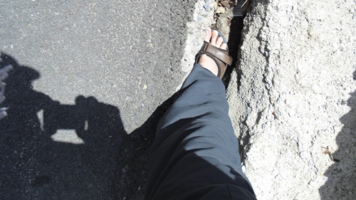 Présentation : Pour raison de sécurité routière, on n’a pas hésité à rendre très dangereux un trottoir sur un tronçon non habité emprunté potentiellement (et idéalement) par plus de mille personnes par jour.