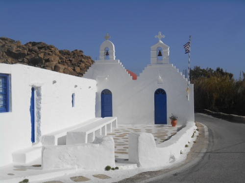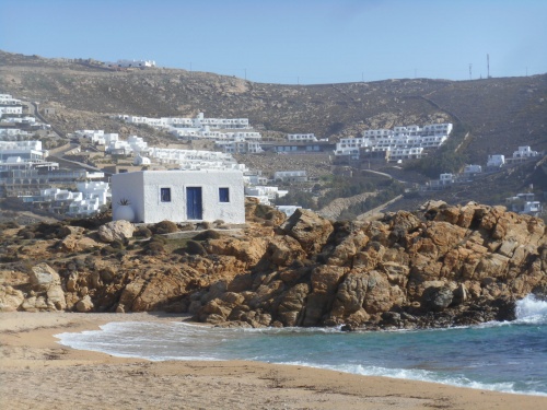 Plati Yialos, Agios Stefanos, Agri Beach, Elia, Kalo Livadi et Kalafati. Ma plage préférée est Agios Sostis, dans le nord, avec une merveilleuse petite chapelle blanche. Quelle vue superbe sur l'Egée. Ano Mera mérite une visite pour son monastère Panagia Tourliani et le pope bien sympathique Alexios Papadopoulos se laisse photographier.