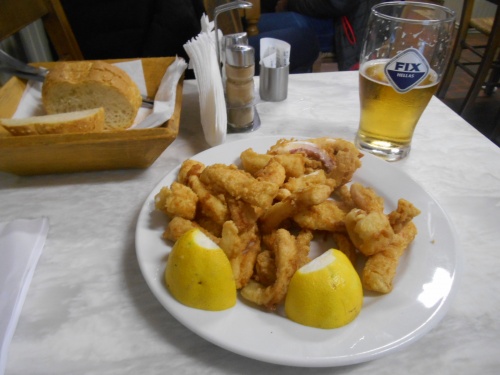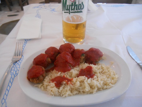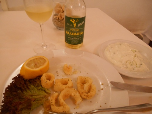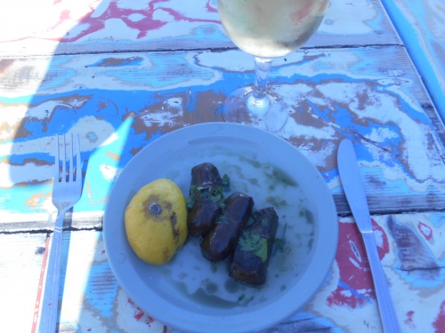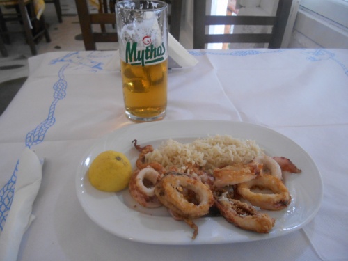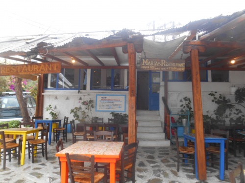 La table est présente aussi à Mykonos, même en novembre, notamment chez Maria, près de l’Hôtel Leto, établissement très correct, sympathique et présentant la bonne cuisine grecque traditionnelle,
