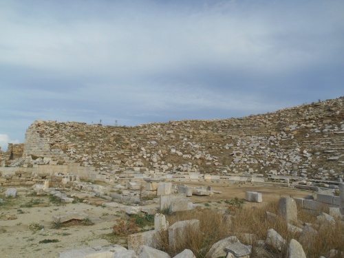 Délos est une petite île, basse, d'une superficie de 3km²430. Suivant la mythologie, Délos est le lieu de naissance d'Apollon, dieu grec des arts, du chant, de la musique, de la beauté masculine, de la poésie et de la lumière et d'après quelques mythes, d'Artémis aussi, enfant de Zeus, déesse de la nature sauvage et de la chasse. Odysseus Elytis écrivait : « L'Egée, l'Amour, la proue de ses écumes, les mouettes de ses rêves, sur son plus haut mât, un marin dresse l'oriflamme d'une chanson. L'Amour, son chant, les horizons de son voyage et l'écho de sa nostalgie, sur le rocher le plus battu, la fiancée guette un navire. L'Amour, son navire, le calme qui suit des meltems et le foc de ses espoirs, sur sa vague la plus légère, une île berce l'arrivée ».