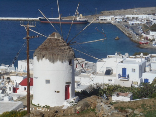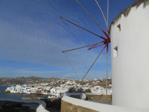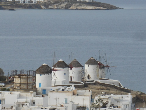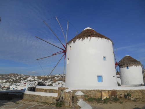 Cinq moulins dressent leurs ailes tronquées dans le ciel, rendu extraordinairement pur, par le vent de l’été, le meltem. Tout semble avoir été ordonné par un publicitaire de talent.