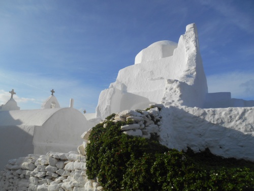 Mykonos compte 365 chapelles et Paraportiani est le monument le plus photographié de l’île. Il s’agit d’un ensemble de quatre petites églises au niveau du sol et une à l’étage, qui est connue comme Paraportiani (parce qu’elle se trouve près de la petite porte –en grec, paraporti). Il parait que le groupe fut construit progressivement au XVIe et XVIIe siècles. Des fouilles sont effectuées près de Paraportiani ; il s'agit de restes d'un château médiéval.