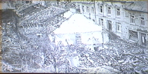Jean-Marie Lesage , fils de Lili Lesage, présenta ensuite son montage audio visuel, riche de plus de 350 diapositives: ce tableau émouvant assorti de témoignages de survivants du bombardement montra la ville avant, pendant et après la guerre.