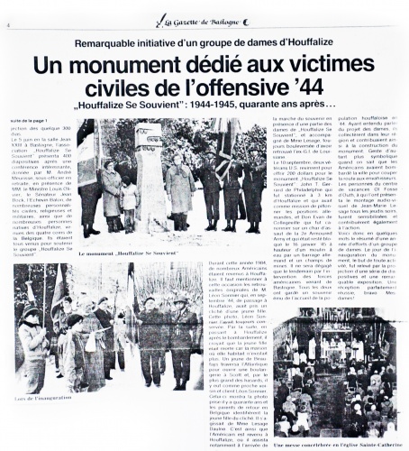 Le 1er décembre 1983, bientôt quarante années s'étaient écoulées et rien ne marquait à Houffalize, le souvenir du massacre de quelques 190 victimes civiles, foudroyées lors des bombardements de 1944/1945.