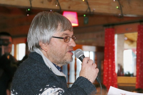 • Au sein du chalet gruyerien, Pierre Luthers au micro (c) Jacques Baudoux