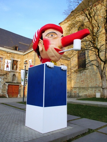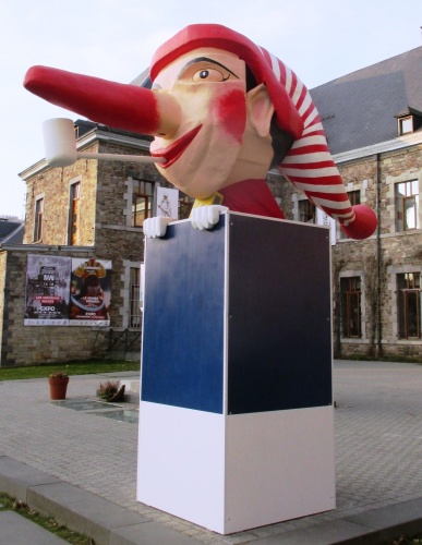 En prélude des festivités programmées pour ce prochain long week-end dans la cité du Cwarmè, un énorme long nez, masque emblématique du carnaval malmédien ( 145 groupes dans le cortège de ce dimanche ) a pris place devant le Malmundarium. Cette tête a été sortie d’un atelier communal, retrouvée par un menuisier passionnée de carnaval. De dimensions respectables avec plus de trois mètres de hauteur, cinq mètres de longueur et d’un poids de 200 kg, elle a séjourné pendant plus de 36 ans dans les locaux de la ville. Fan de carnaval, l’artisan l’a rénovée par application de nombreuses couches de peinture et la création d’un socle aux couleurs du sarrau et du pantalon, ceci afin de la mettre en évidence. Avec l’accord du collège communal puisqu’occupant l’espace publique, elle trône actuellement devant l’abbaye mais sera retirée après les festivités.
