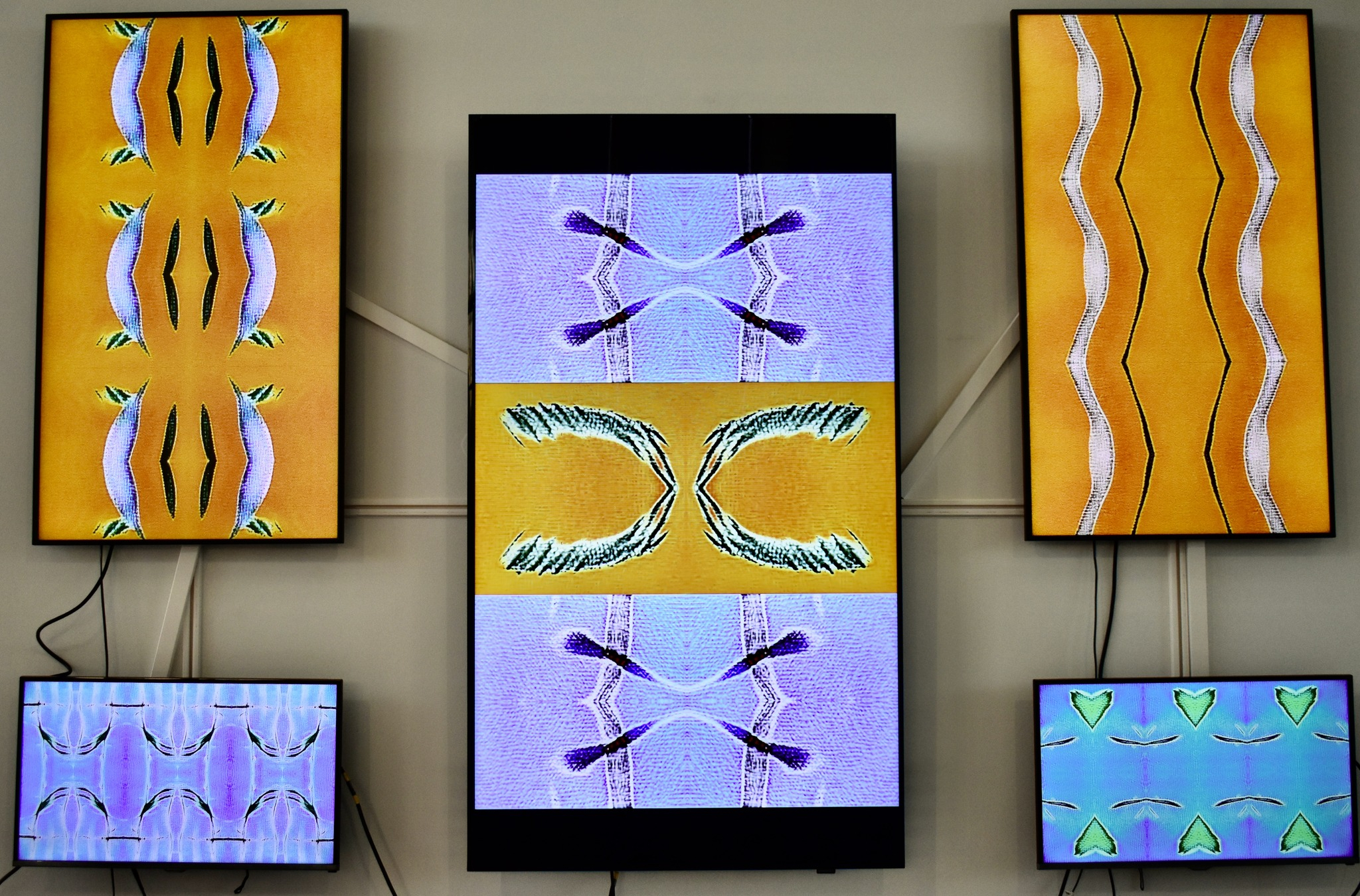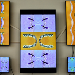 ** « Vicious Circle », dans la salle « Tambour » du « Delta », par Peter William Holden, qui écrit : « Un espace dans lequel je peux me concentrer sur les moyens de brouiller les frontières entre la cinématographie et la sculpture. En combinant des dispositifs informatiques avec des éléments mécaniques, je crée des sculptures influencées par le mandala, mais contrairement à un sculpteur traditionnel, je considère ces sculptures cinétiques comme un simple moyen d’expression ! Il s’agit d’animations, de chorégraphies et de sons transitoires, pendant que les sculptures sont en mouvement. »