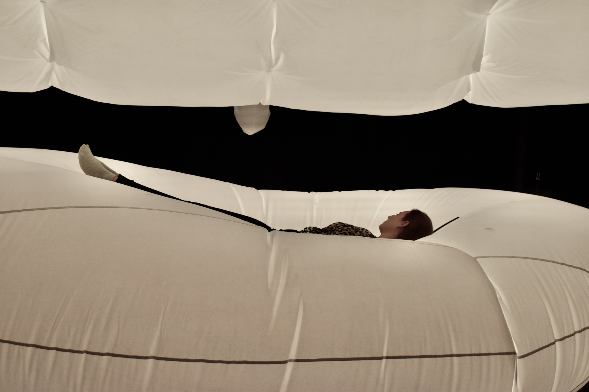 ** « The physical Mind », au sous-sol du « Delta », par l’artiste néerlandais Teun Vonk, qui permet à un.e volontaire de s’allonger sur une surface qui va se gonfler et monter quelque peu, alors qu’un second objet gonflable s’abaisse, la personne se trouvant enserrée entre les deux surfaces gonflables de cette installation. Le.la participant.e fait ainsi l’expérience d’une sensibilté accrue aux stimuli, d’une vigilence normalisée et d’un état d’esprit parfaitement relaxé, ces effets positifs pouvant se prolonger quelques heures après l’expérience.