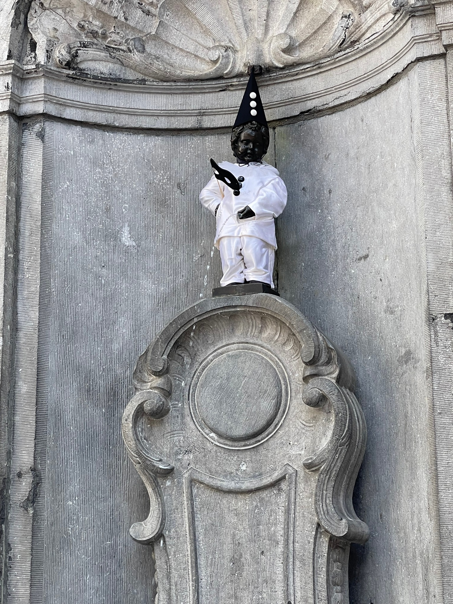 A l'issue du traditionnel "verre de l'amitié", c'est en cortège que les officiels et les membres des confréries se rendirent devant notre "Manneken Pis", revétu, pour l'occasion, de son habit de "Pierrot".
