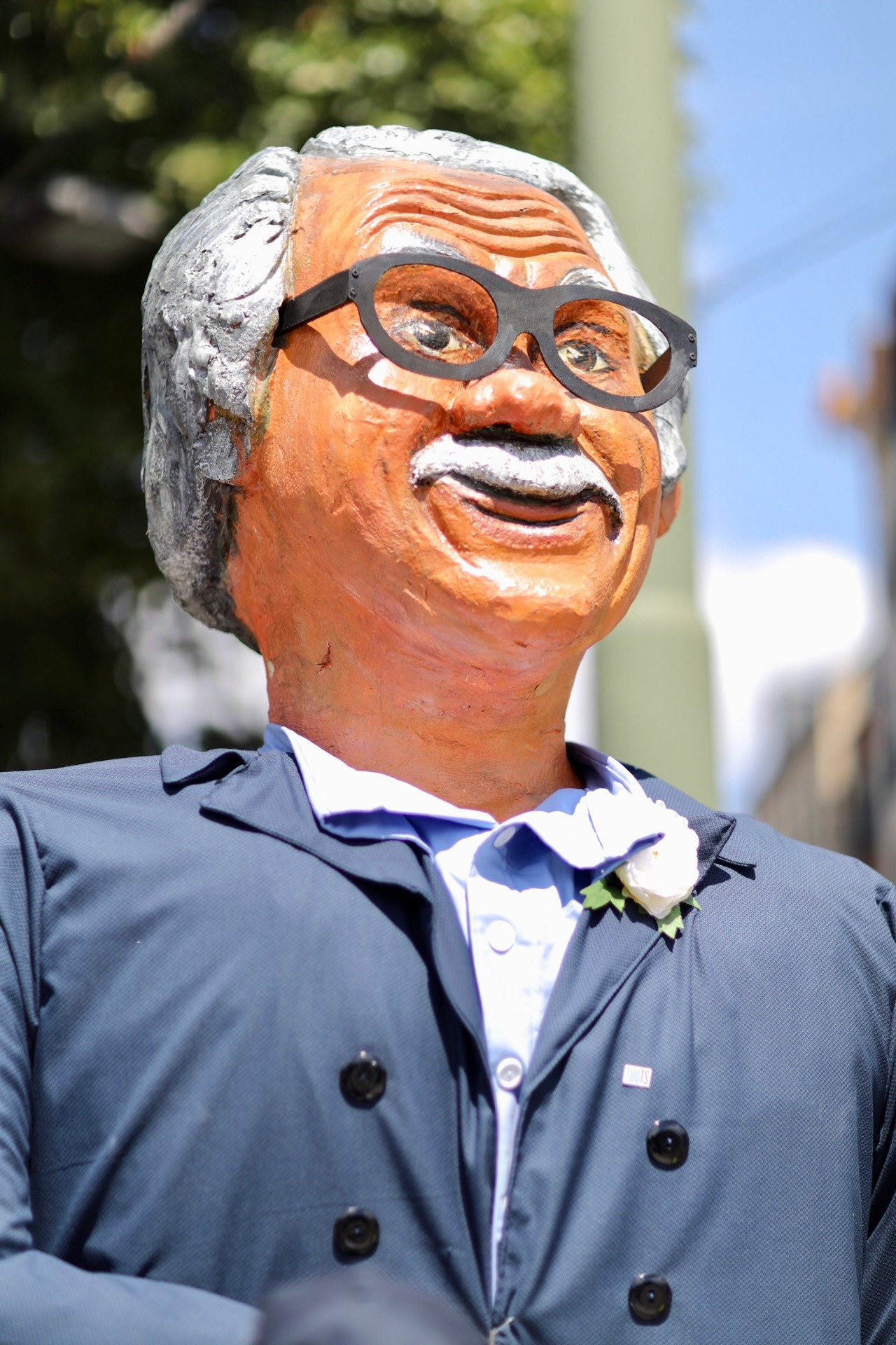 Arrivés sur le champs de "Foire", le cortège officiel s'ébranla, accompagné d'un tout nouveau géant bruxellois, Toots Thielemans (né Jean-Baptiste Frédéric Isidore Thielemans), créé à l'occasion du centenaire de la naissance du célèbre jazzman belgo-américain, "echte Brusseleir", né dans les Marolles, le 29 avril 1922, dont les harmonicats se turent, bien trop tôt, le 22 août 2016.