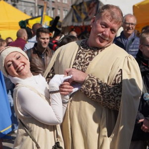 De 10h00 à 10h45, nous pourrons applaudir « Goliath » – déjà présent à Namur, en 1458 –, sa famille de Géants namurois & ses « Chevaux Godin », précédant Don Juan d’Autriche, la Reine Margot, Blanche de Namur & Magnus IV Eriksson, suivis des danses traditionnelles (arèdjes, quadrilles, matelottes, mazurkas, passe-pieds, polkas, troikas & valses) de la « Frairie royale des Masuis & Cotelis jambois », fondée en 1960.