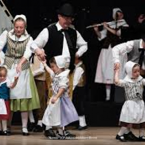Fondé en 1970, « Reintje Vos » est un groupe de danses folkloriques flamandes, au sein duquel jeunes et moins jeunes sont unis à travers le langage de la danse et de la musique. Sur la scène, nous retrouvons deux types de vêtements, ceux de travail et ceux des fêtes, ces derniers ayant été portés les dimanches, au XVIIIè siècle, par la population rurale. Pour les femmes, notons leurs jupes colorées, ornées d’un jabot en dentelle, leurs bonnets, avec des oreilles, et leurs capes noires assorties. Quant aux hommes, ils portent un pantalon noir, une chemise blanche, un gilet, un foulard rouge, ainsi que des « faas » noirs, comme couvre-chefs, nous rappelant les métiers de leurs aïeux, agriculteurs, boulangers, brasseurs, charpentiers, forgerons, gendarmes, négociants en charbon et sabotiers.