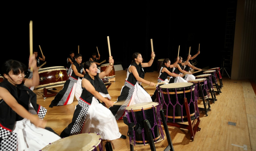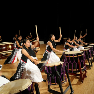 Cet ensemble d’adolescents et de jeunes étudiants, fondé en 2003, nous présente ses « daikos » (tambours japonais), le « taiko » (art de jouer du tambour, … dès l’âge de 6 ans) reflétant, depuis plus de 2.000 ans, les traditions magiques et majestueuses du Japon, notamment dans les sanctuaires shintos et les temples bouddhistes, démontrant son étroite association à la religion . Si les anciens sentaient la puissance de la divinité dans le son grondant du taiko, celui-ci a joué un rôle important pour accompagner, dès la féodalité, les réputés théâtres « Kabuki » & « Noh ». Pour en revenir à cet ensemble, soulignons qu’il s’est produit, en 2019, à Tokyo , à l’occasion du match d’ouverture de la « Coupe du Monde de Rugby à XV », ainsi, que pour la « Ligue japonaise de Base Ball »