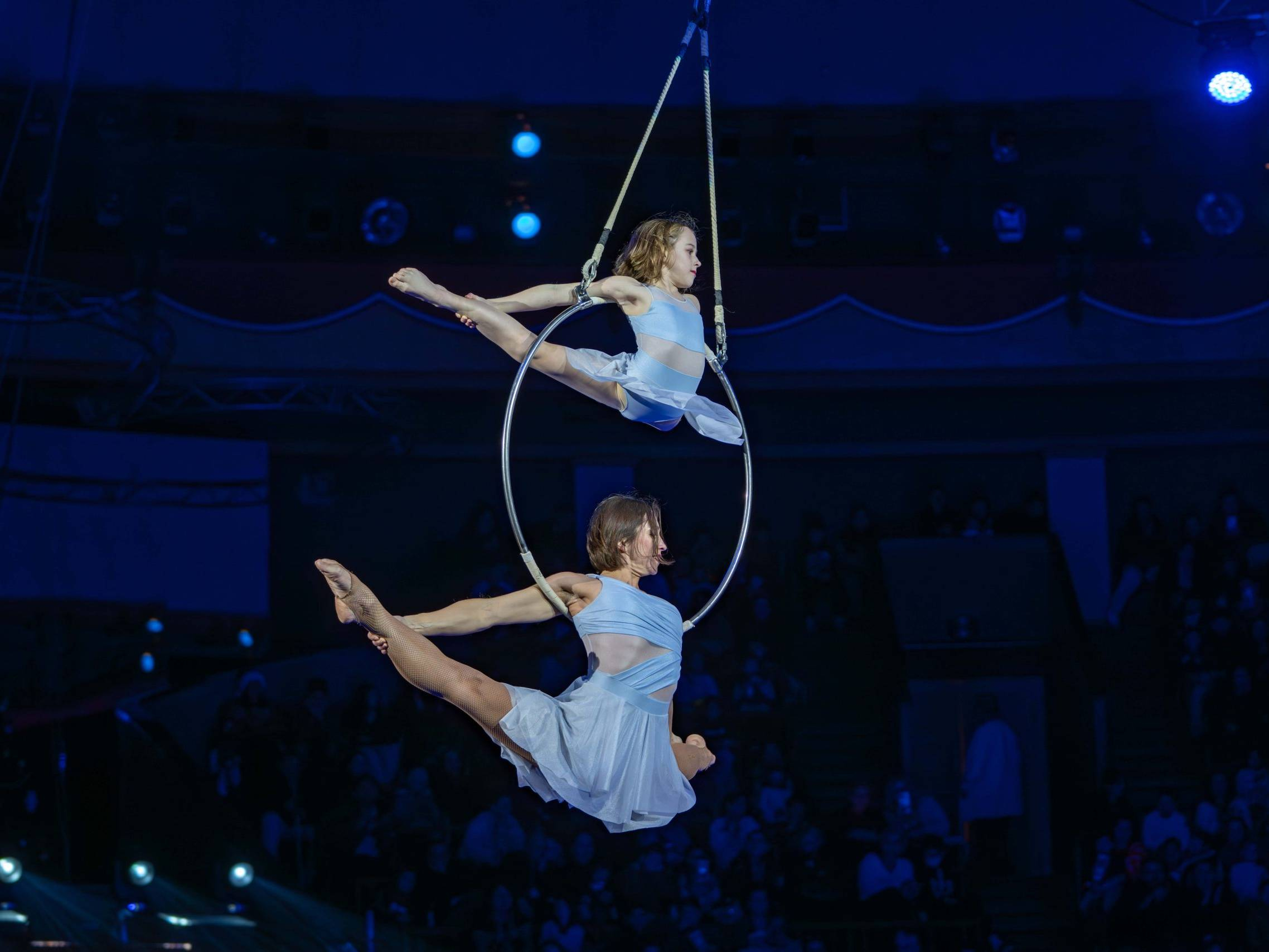 Composé de Fetkulova Ievgeniia (diplômé, en 2022, du « Collège du Cirque », à Kiev, en Ukraine) & de sa fille, Alisa, qui commença à se produire avec ses parents dès l’âge de six ans , son papa, Mikhail Sozonov, qui avait créé ce duo avec sa maman étant tragiquement décédé, ce duo d’origine s’étant produit, notamment, sur les scènes de l’ « Opéra », à Sydney, & au « Madison Square Garden », à New York. Quant à l’actuel duo, présent à Beloeil, ils ont récolté un plein succès tant en Allemagne, qu’en Roumanie & en Slovaquie.