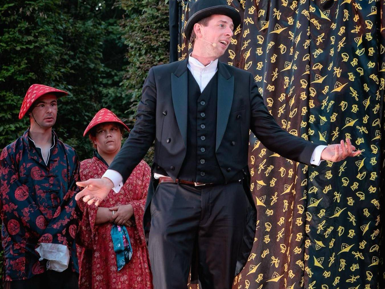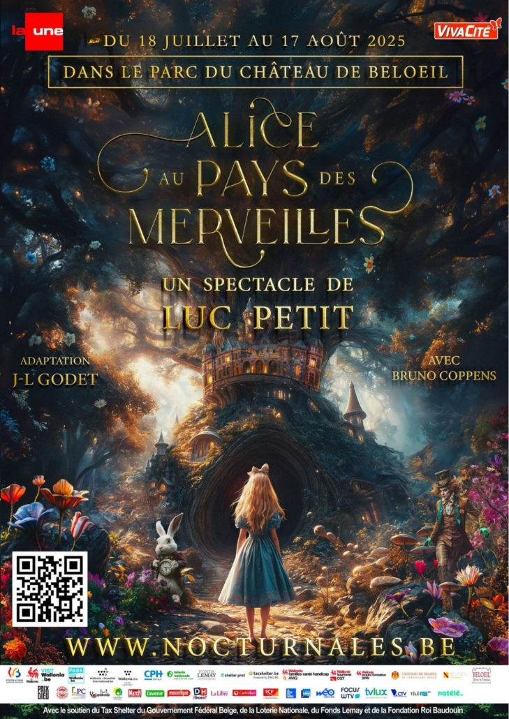 Après « Le Tour du Monde en 80 Jours », en 2024, « Peter Pan », en 2023, « Pinocchio », en 2022, « Le petit Chaperon Rouge », en 2021, …, comme chaque année, depuis 2018, l’asbl « Les Nocturnales » nous propose, dans le Parc du Château de Beloeil, jusqu’au dimanche 17 août, un spectacle de Luc Petit (°Tournai/1962), avec des textes adaptés par Jean-Louis Godet (°Grenoble/1939) & Bruno Coppens (°Tournai/1960), dans le rôle du « Chapelier fou » : « Alice au Pays des Merveilles », inspiré du roman de Lewis Carroll (1832-1898).