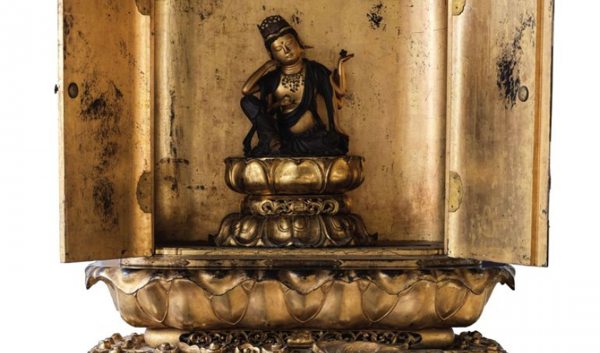 Ainsi, en vue de cette exposition, dès 2023, une série d’opérations de restaurations fut entreprise, sous le contrôle d’experts scientifiques, 23 pièces ayant ainsi été restaurées, dont une pièce en bois laqué : la statue du Bodhisattva Avalokiteshvara et son autel. Si la statue avait déjà été restaurée, en 2006, ce n’était pas le cas de l’autel et de ses socles. Ces derniers présentaient des fissures, des traces d’oxydation, d’encrassement, des soulèvements et une perte de dorure. Certains éléments en bois, déformés par l’humidité, menaçaient également la stabilité de l’œuvre. Son état nécessita une campagne de restauration lourde, soutenue par le « Cercle royal des Amis de Mariemont ».