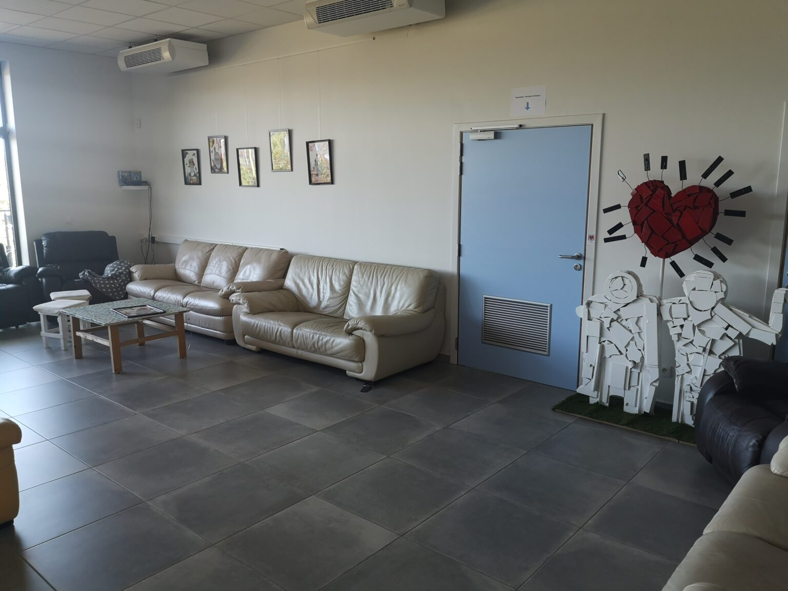 Au rez-de-chaussée, on trouve le grand espace de vie : lieu d’accueil, réfectoire, salon de détente,
