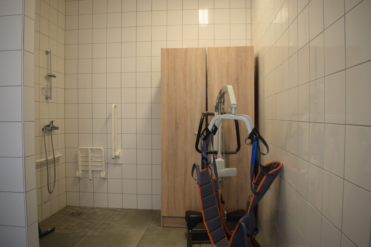 On y trouve encore le vestiaire, aux armoires individuelles décorées par les bénéficiaires, une salle de change équipée et des toilettes/douches adaptées.