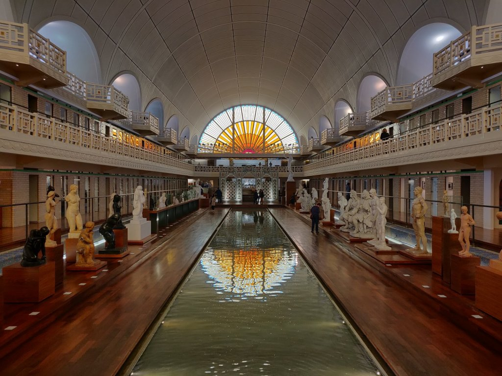 Voici, indiscutablement, vu la qualité des expositions qui nous sont proposées, l’occasion rêvée, pour les personnes qui n’auraient pas encore découvert ce superbe musée, de se rendre à Roubaix, à mi-distance entre la Grand’ Place et la gare ferroviaire Jean Lebas, la collection permanente de « La Piscine » nous dévoilant, également, ce qu’était la vie dans le Nord, des combats de coqs aux courses cyclistes, en passant, à l’étage, par l’ancienne richesse textile de cette ville, sans oublier de nombreuses statues, entourant une surface d’eau, nous rappelant l’utilisation préalable de ce lieu, merveilleusement éclairé par un vitrail de toute beauté …