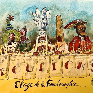 En faisant l’éloge de la « Fou’losophie » (clin d’oeil à un ouvrage, « L’Eloge de la Folie » {1509), du philosophe hollandais Erasme {1466-1536}), ce parcours pose une question majeure : la folie n’est-elle pas plus forte que la  sagesse ? Les figures de Bouffons d’hier et d’aujourd’hui nous aident à y répondre.