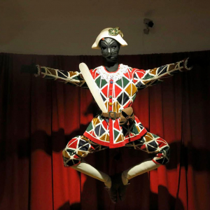 Depuis le Moyen Âge, les Bouffons occupent une place de choix dans notre imaginaire. Clowns, fous du roi, valets, …, ils prennent de nombreuses formes mais cherchent toujours à amuser le public en adoptant une attitude souvent subversive. Sous ses airs de saltimbanque grotesque, le Bouffon est une figure indispensable à de nombreuses représentations masquées.