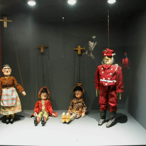 Ces dernières, victimes de leur snobisme, ne prennent pas au sérieux les marionnettistes, auxquels une autre salle est consacrée. Nous y découvrons quelques marionnettes et deux castelets. Derrière ces derniers, les marionnettistes, profitant d’un champ d’action beaucoup plus libre, développaient, à l’époque, en toute impunité, des représentations dont le moteur principal de l’action était la contestation de l’autorité.