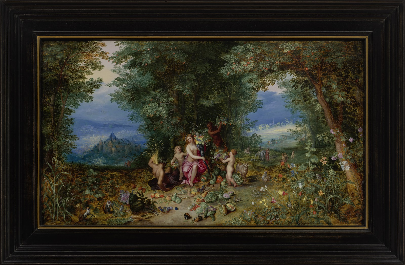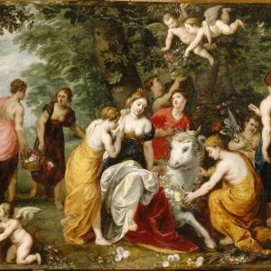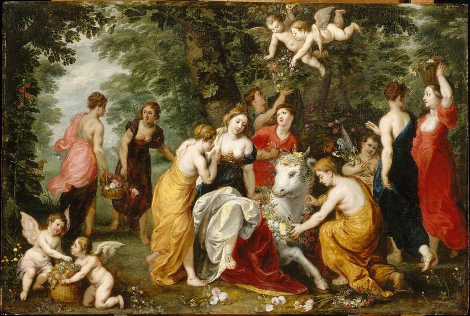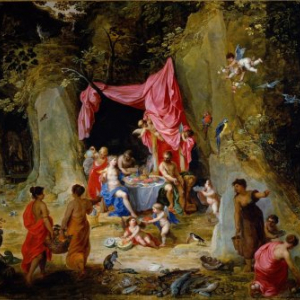 Les scènes mythologiques issues des textes d’Homère (VIIIe siècle avant notre ère) ou d’Ovide (48 avant notre ère-an 17 ou 18), sont l’occasion pour Jan Brueghel l’Ancien et Hendrick van Balen de montrer l’étendue de leur érudition, tout en flattant celle de leurs commanditaires. Au cœur des paradis verdoyants de Brueghel, les figures divines de Van Balen privilégient l’harmonie plutôt que le drame, relégué à l’arrière-plan et pourtant indissociable des mythes antiques. Van Balen trouve dans ces sujets l’occasion d’exprimer à merveille sa maîtrise du nu féminin. Quant à Brueghel, il ponctue ses paysages idylliques de fleurs, de fruits et d’animaux, témoignant de la multiplicité de son talent.