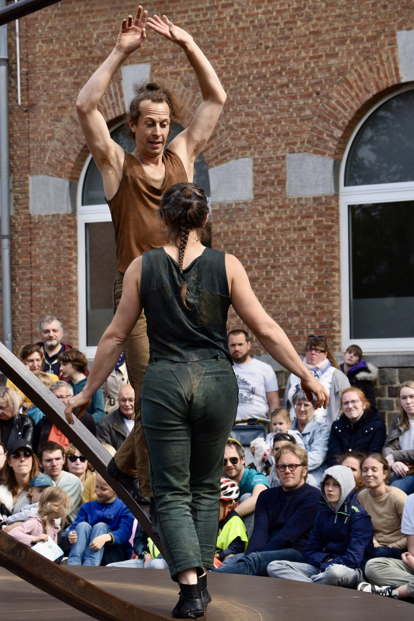 Grâce aux photograpies de Murielle Lecocq, retrouvons l'une de ces companies, "Underclouds", qui se produira une dernière fois, ce samedi 20 mai, à 16h15, dans la cour de l'école "Notre-Dame", à l'arrière du "Théâtre royal".