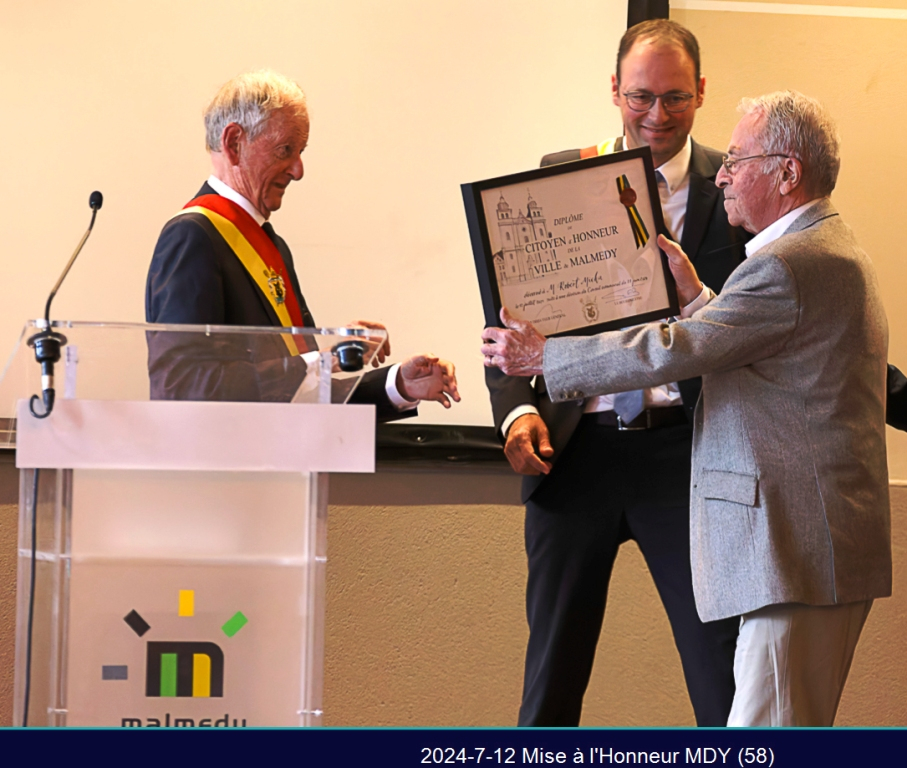 Dans quelques instants et après une présentation de vos cursus respectifs, le diplôme de Citoyen d’honneur de la Ville de Malmedy va vous être remis par Monsieur le Député Bourgmestre et ce soir, nous sommes toutes et tous très fiers et heureux d’être à vos côtés pour partager ces moments de reconnaissance.