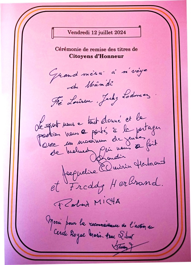 Félicitons également les autres talentueux citoyens mis à l'honneur; Monsieur Robert Micha, Monsieur Jean-Marie Letesson, Madame Jacqueline Quirin, et notre Président d'honneur Monsieur Freddy Herbrand.